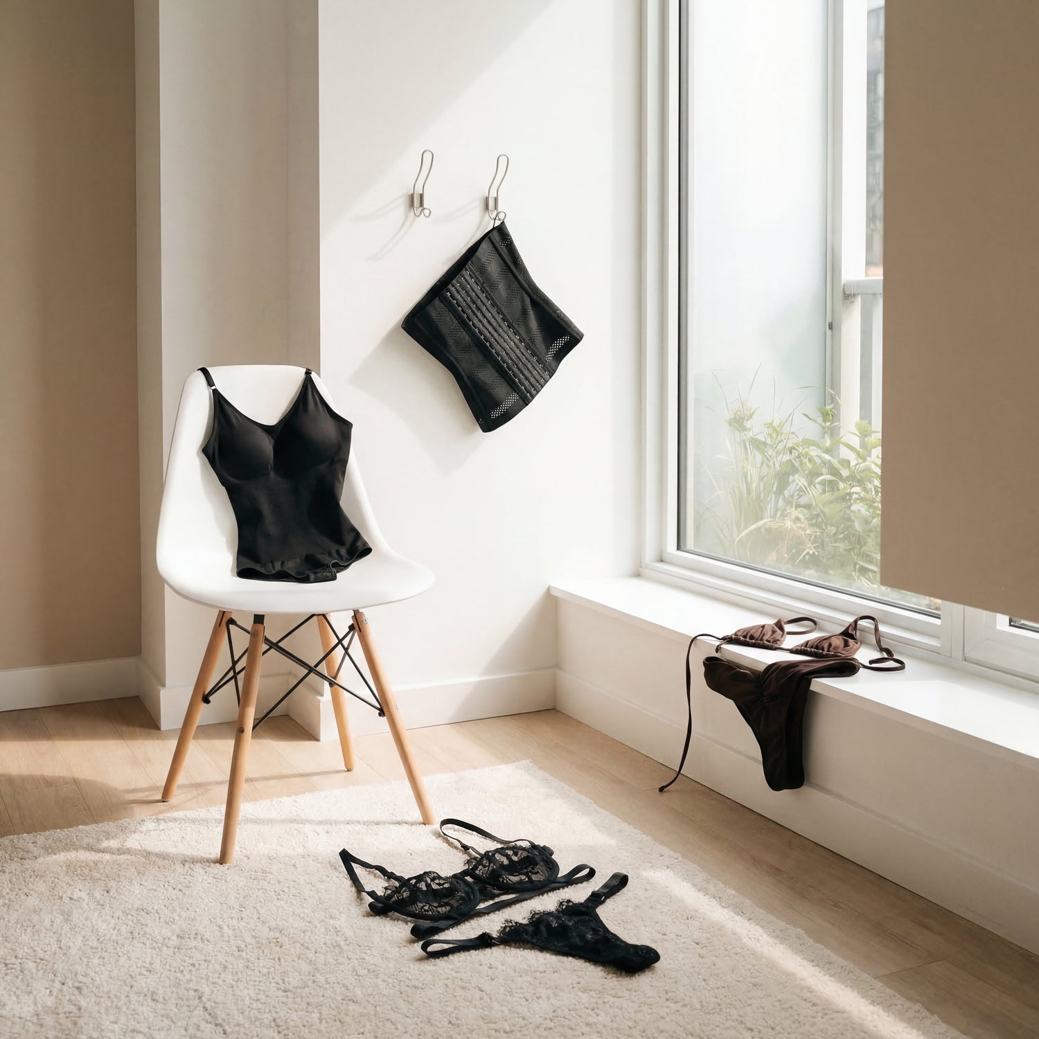Der vollständige Look beginnt darunter. Von der Brust bis zum Oberschenkel — eine glatte, definierte Linie, die das Outfit trägt.